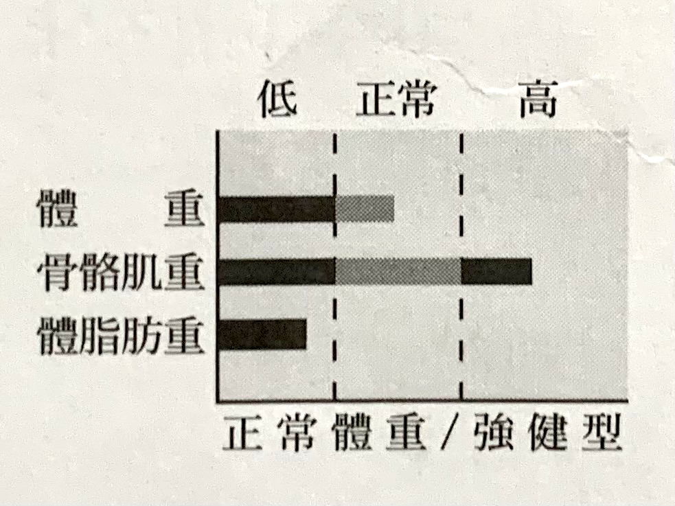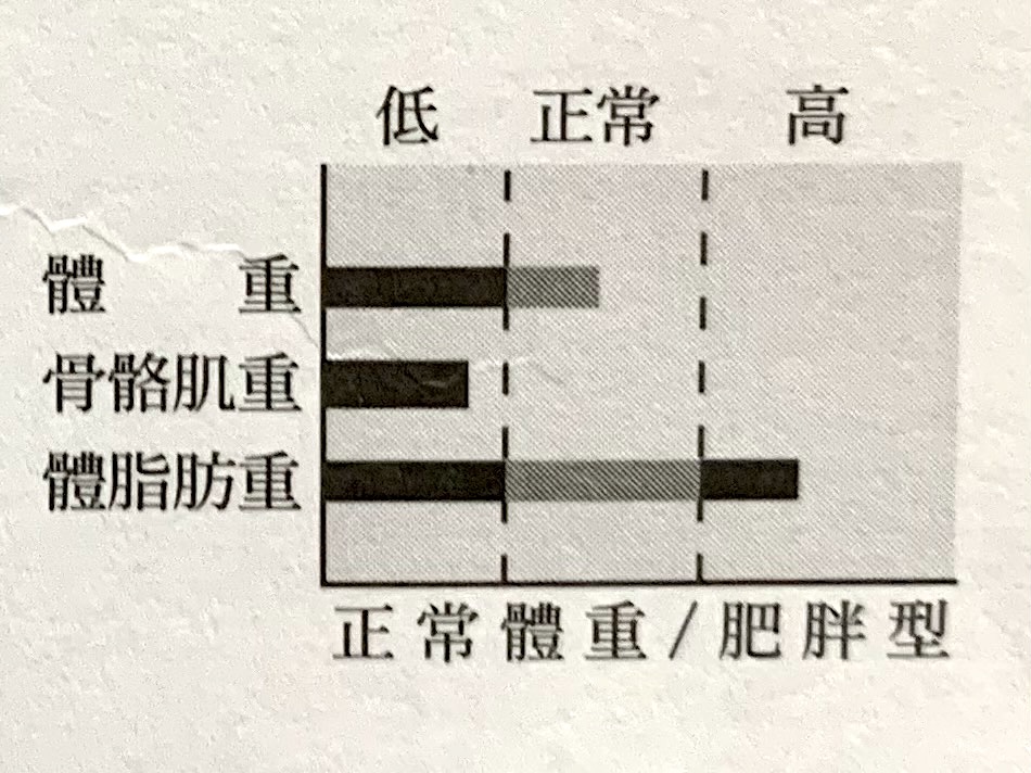 我們先從體重、骨骼肌重及體脂肪重連成的字母來看看目前身體的狀態: