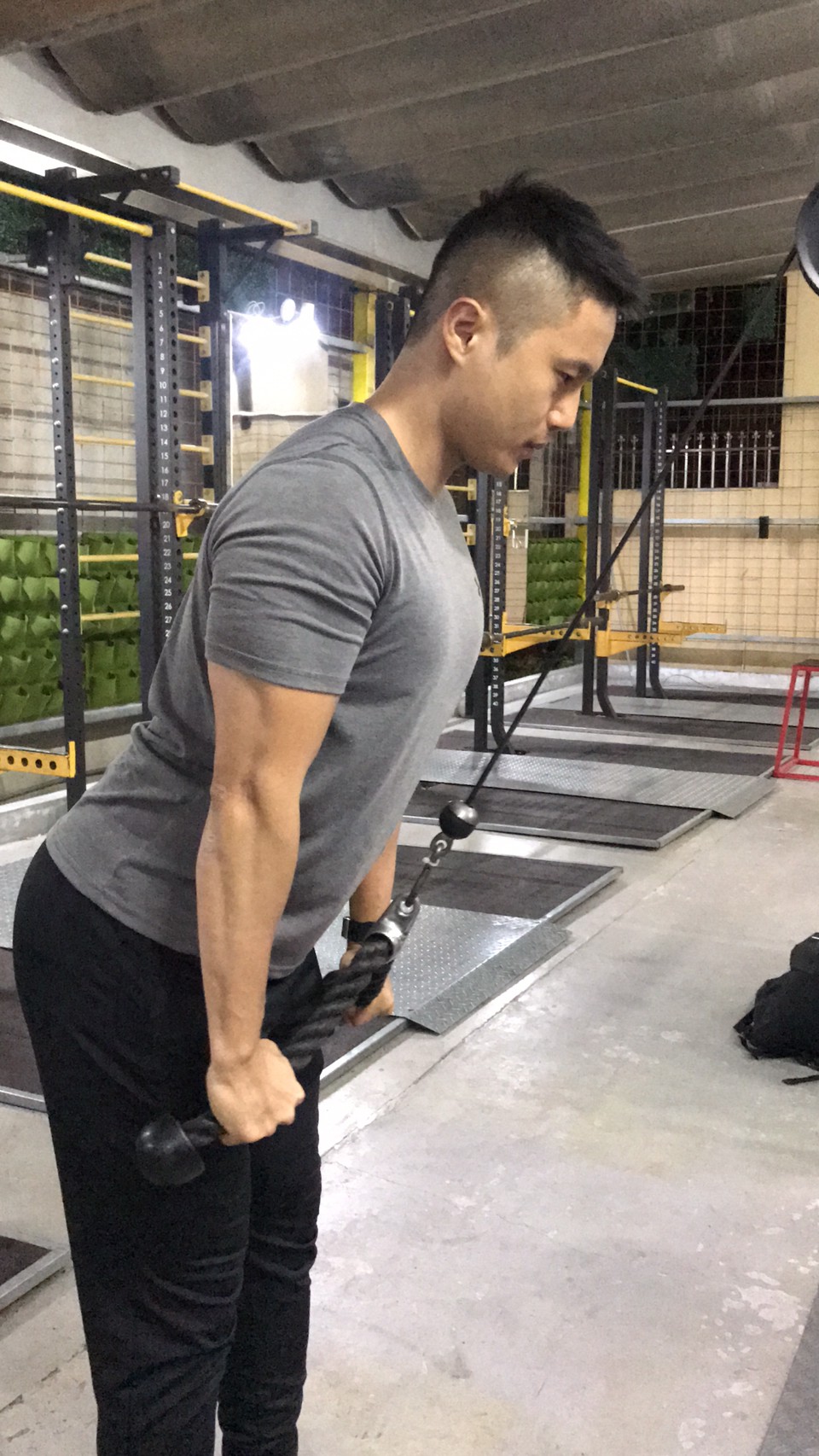 1. Cable Triceps Extension 繩索站姿三頭屈伸