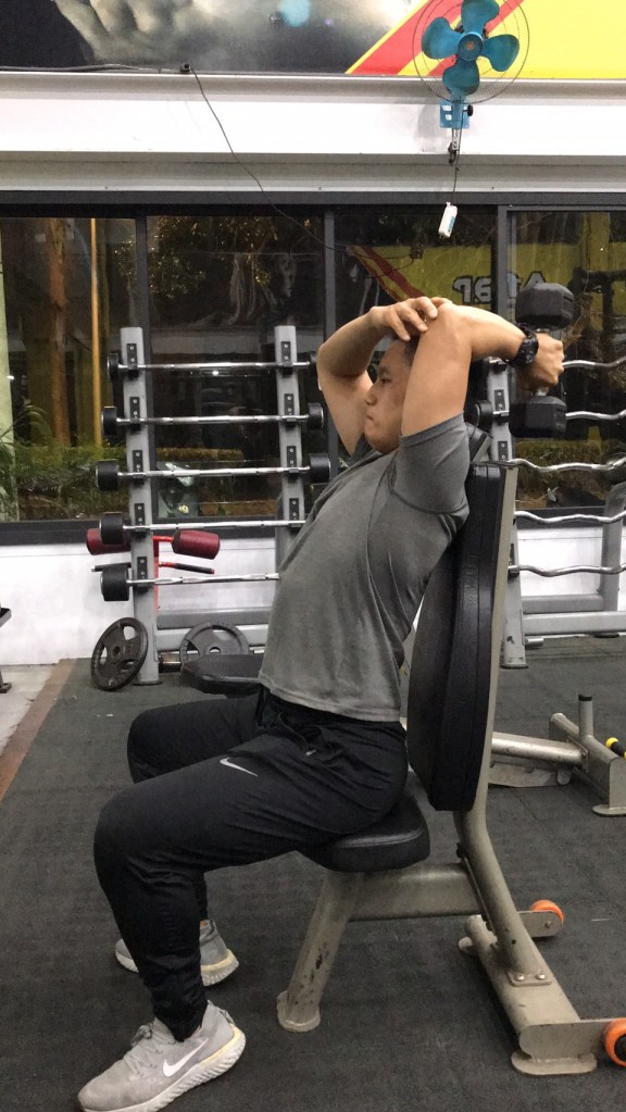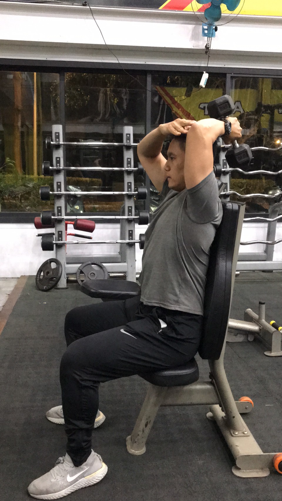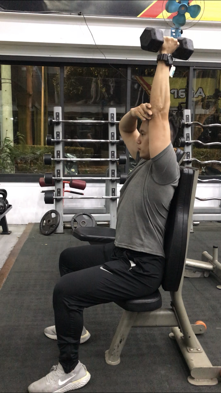 2. Seated Dumbbell Overhead Triceps Extension 啞鈴-坐姿過頭三頭屈伸