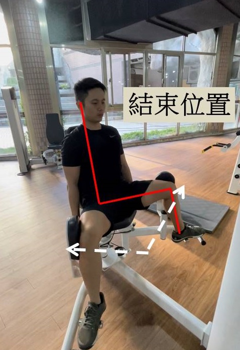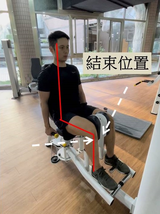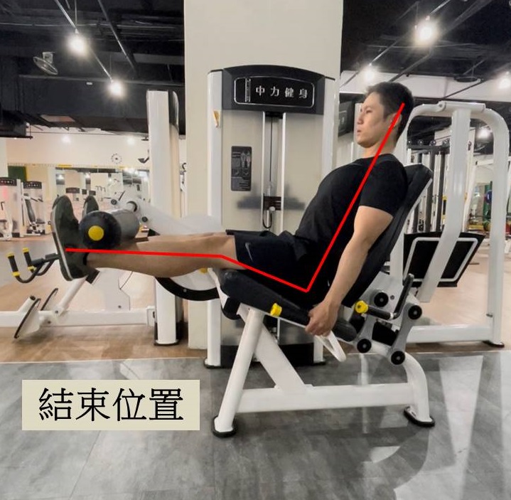 鍛鍊大腿前側的單關節固定式器材,適當的椅背距離是坐下時膝關節可以對齊器械的旋轉軸心。