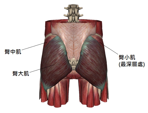 | 臀中肌 | 髂骨 | 股骨 | 髖外展 |