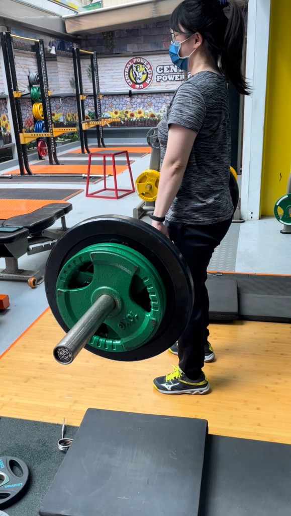 注意事項:操作時腰椎穩定不過度前彎,以避免腰椎壓力,外展肩膀抬起握把時不聳肩、並讓手腕低於手肘、手肘低於肩膀,下放握把距離讓槓片與槓片不碰撞以保持肌肉張力,過程中保持順暢呼吸不憋氣。